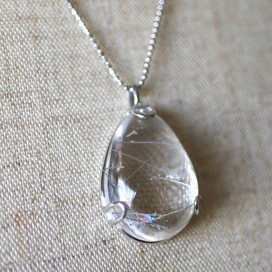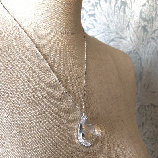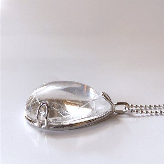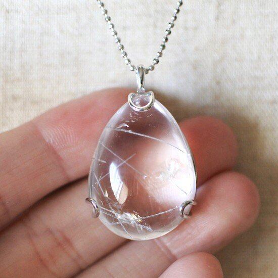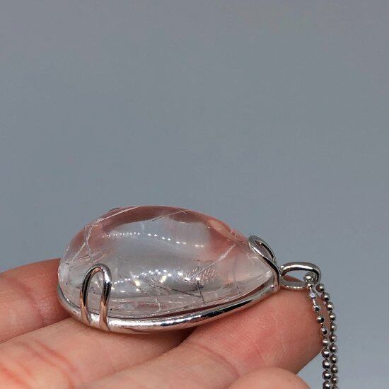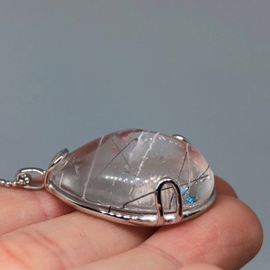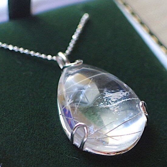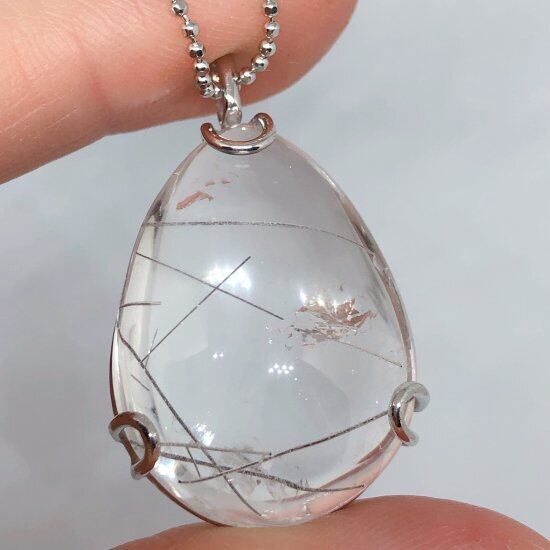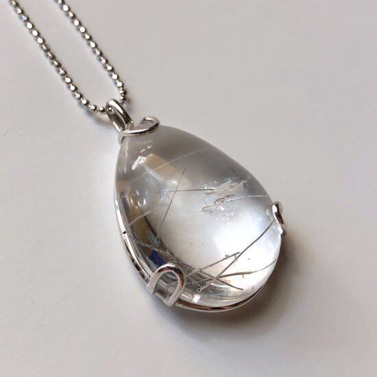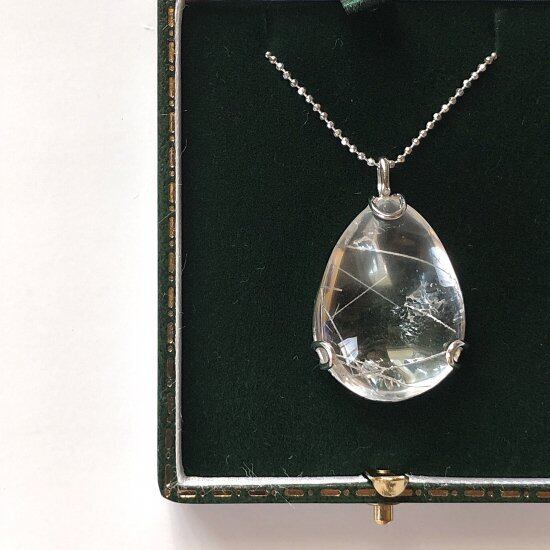 針状のトルマリンを内包したクォーツの彫金ペンダントです。