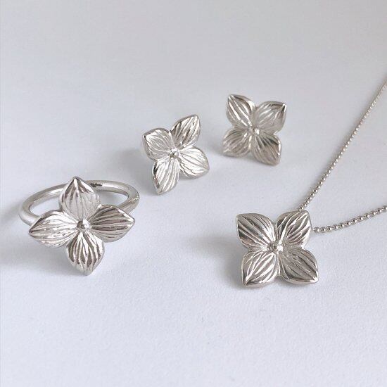 初夏の街に彩り豊かな花を咲かせる、あじさいの小花をジュエリーにしてみました。