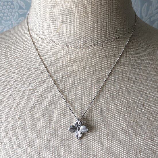 4枚の花びらは折り目正しく、淑女の洋装にも和装にも似合う懐の広いデザイン。